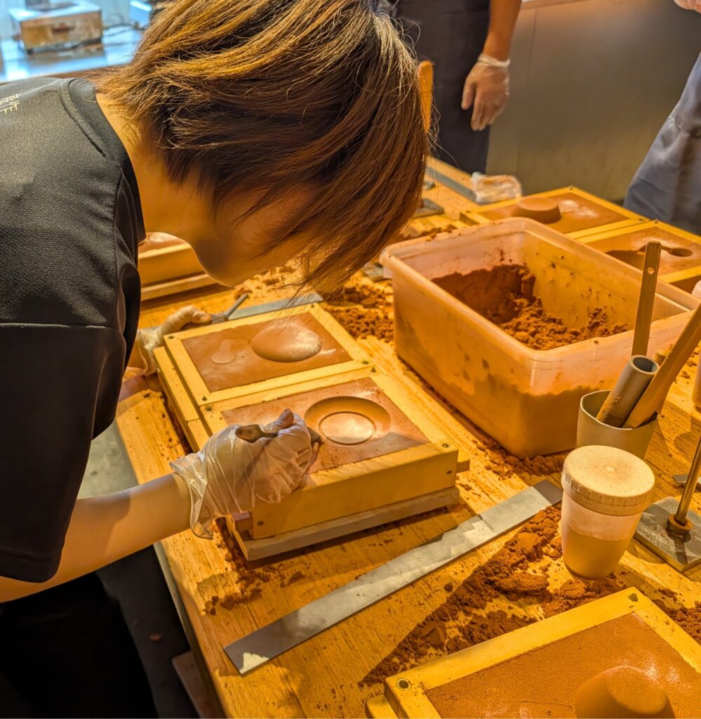 2日目は鋳物製作体験で錫のぐい呑みづくり。