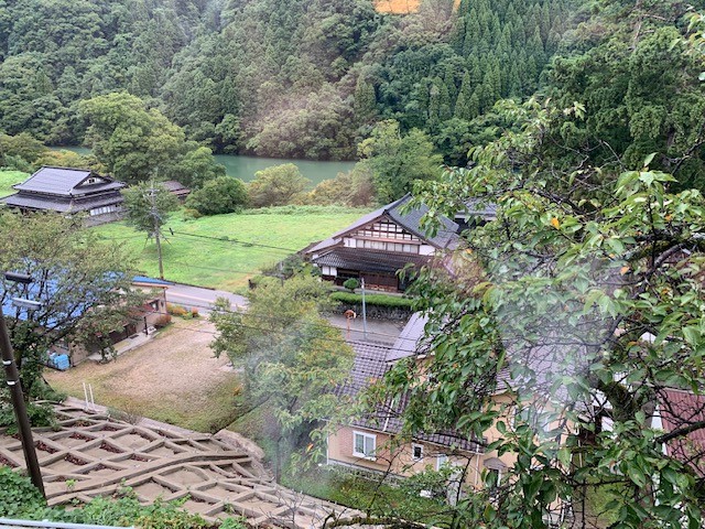 部屋の窓から見える景色は、深い森の間を川が流れる絵に