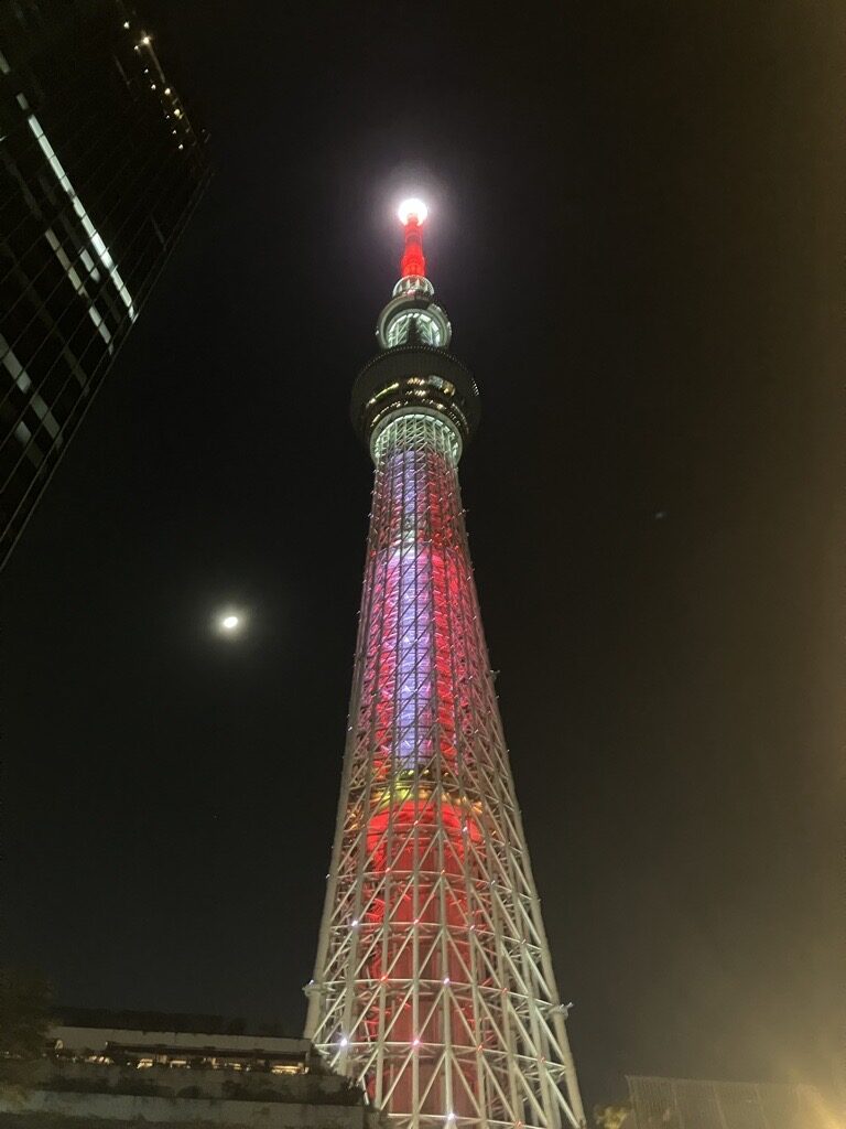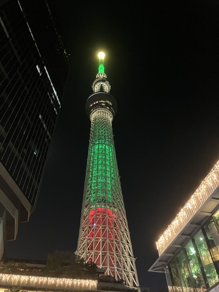 ⇒スカイツリーも緑と赤のネオンがきれいでしたよ!